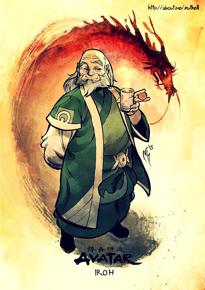 Leírás: Iroh egy nyugdíjas tábornok, aki nagyon szereti a zenét, de a szellemvilágtól nagyon fél. Most ő unokaöccsével, Zukoval utazik, azon célból, hogy visszatudja szerezni a becsületét. Iroh egy nagyon szakképzett tűzidomár mester és gyakran megosztja bölcsességét Zukoval, ki rendszerint nem vesz tudomást róla. Nagyon félti unokaöccsét, mert sajnos az ő fia meghalt.